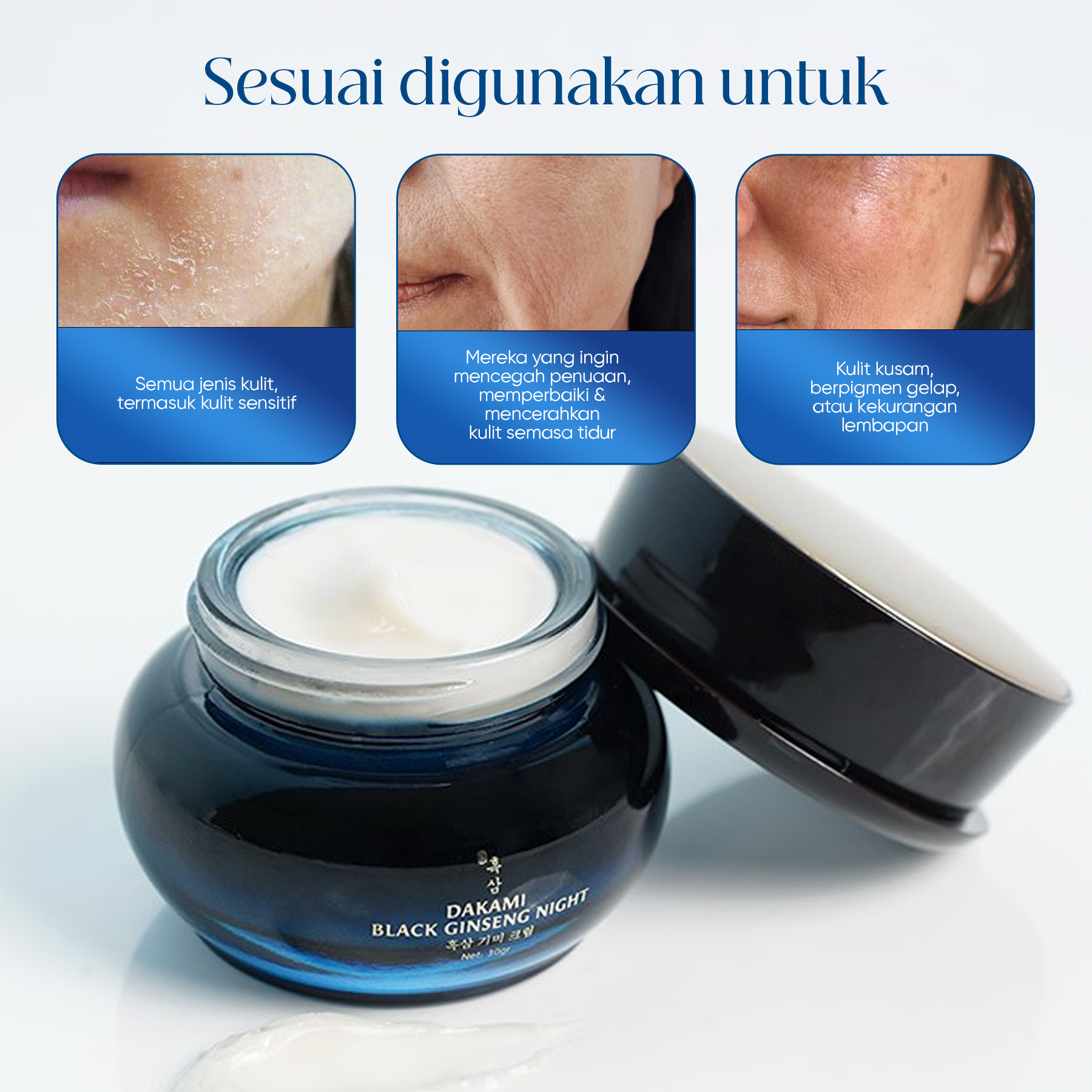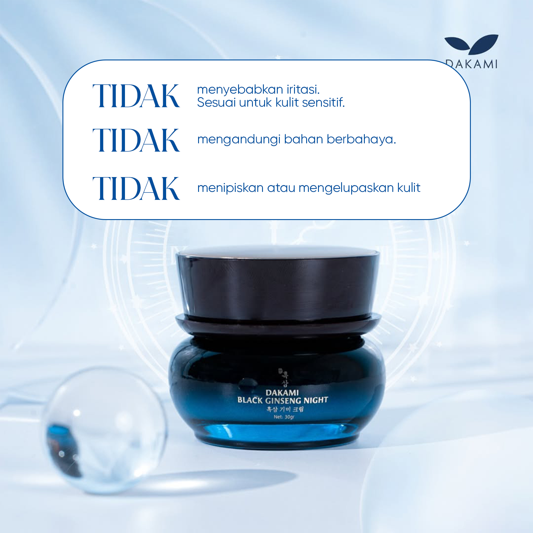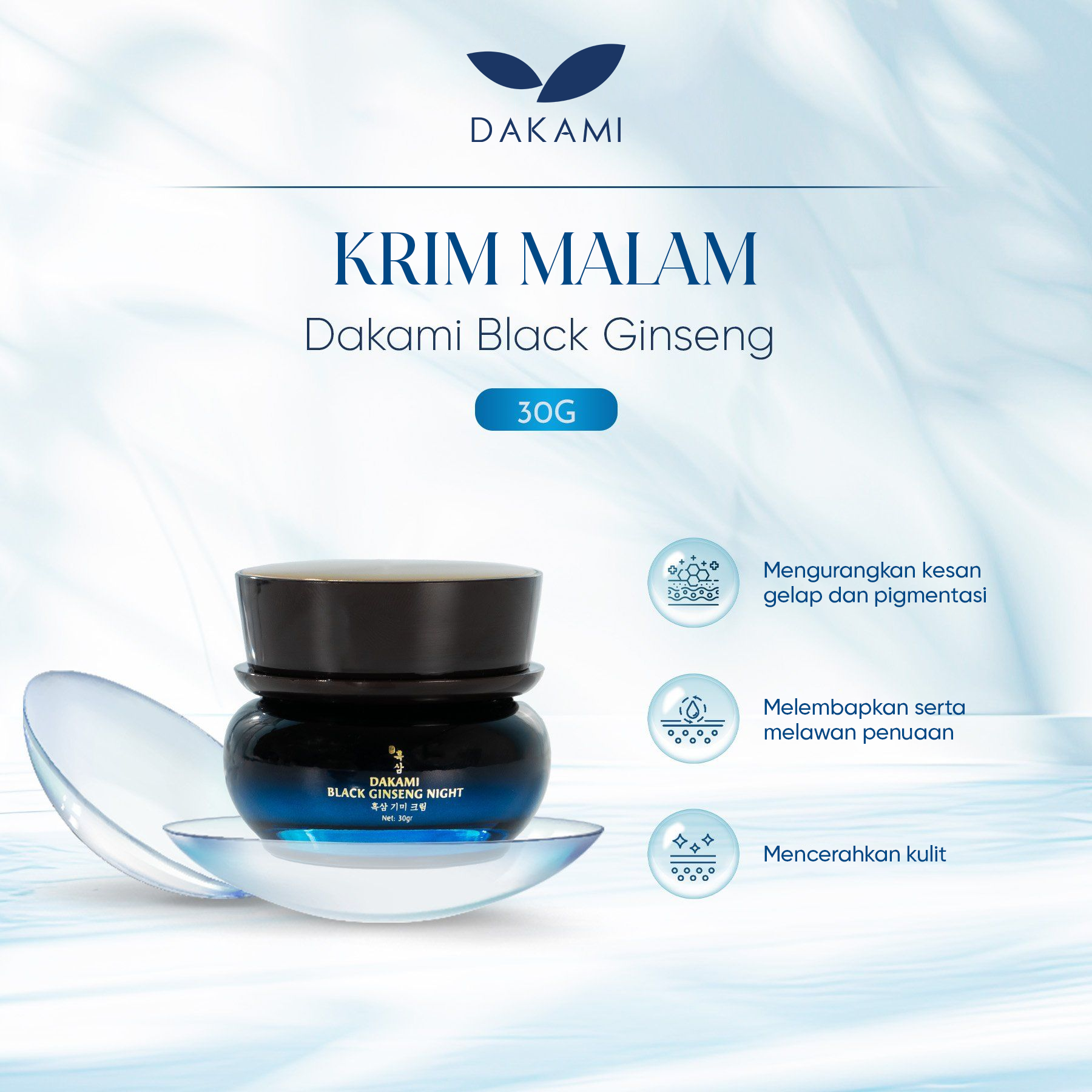 Krim Dakami Black Ginseng ialah gabungan sempurna daripada 3 bahan khas untuk kulit: Niacinamide, Alpha Arbutin dan Melazero. Dakami Black Ginseng membantu mencegah penuaan, mencerahkan kulit, serta mengurangkan kesan gelap, bintik hitam dan pigmentasi.